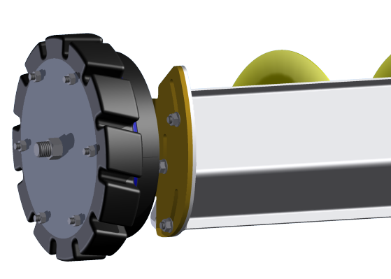 Shown here, our 4.6:1 reduction wheel drive, designed to make bin sweeping a breeze. Superior long-life design with a fully enclosed gear housing and replaceable rubber wheel. Also available in this style is a 10:1 reduction wheel drive.