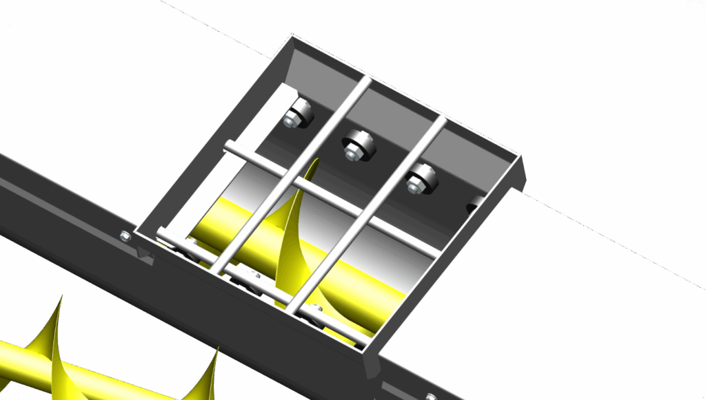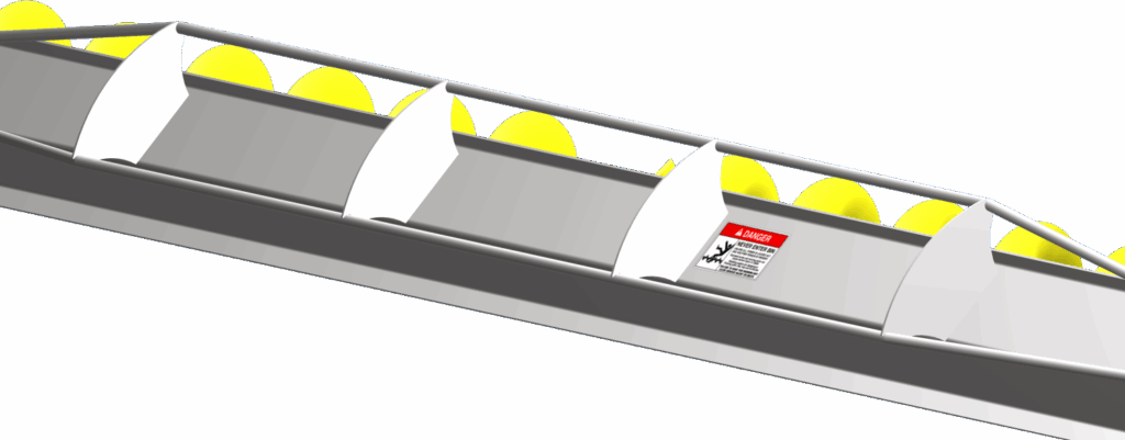 Models 42′ and up have a secondary center hopper, serving as a backup, and saves hours of unnecessary work if the center hopper becomes blocked. All hoppers are guarded by 1/2″ safety rods welded to the hopper.