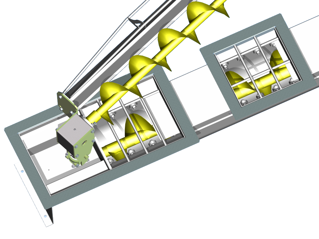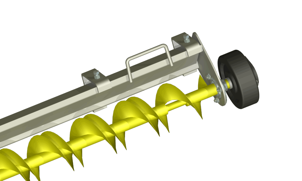 The sweep auger is coupled to the lower gearbox by a swivel, which can be quickly detached by removing a single bolt. To save on equipment costs, sweep augers can be used on multiple, similar sized bins.